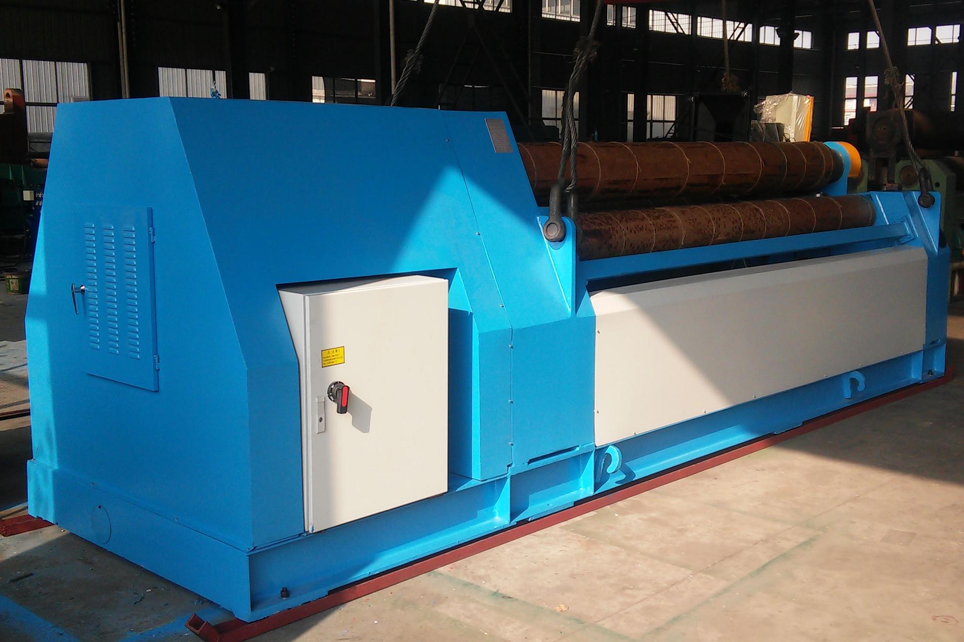 T4-10T3000W Plate Bending Machine is a type of double pinch plate bending machine. Each of the rollers is separate driven. Rollers rectilinear slide ways coated with antifriction material, no maintenance, suit to heavy duty loading, smooth and stable positioning. Spherical roller bearings are equipped on the rollers. All of the rollers in alloyed steel are induction hardening and heat treatment. All of the rollers will be grinded and polished after induction hardening treatment.