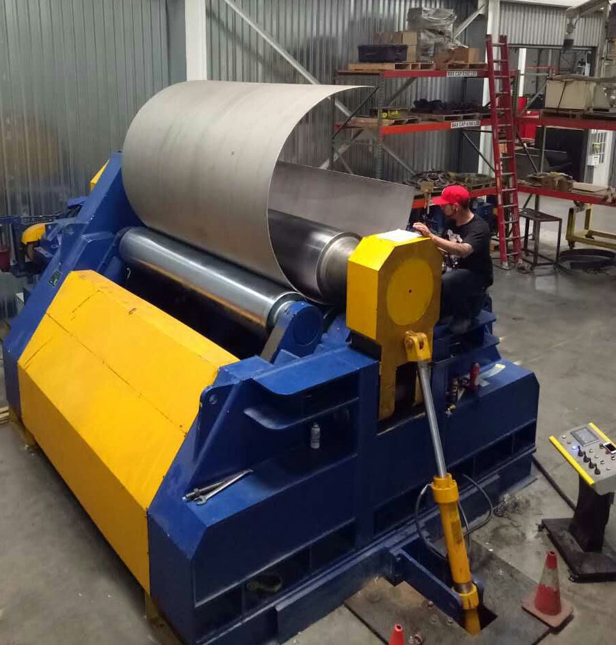 數(shù)控卷板機(jī)是一種能將非金屬板材彎卷成錐體、球面體、筒體或者其它外形的一種鍛壓機(jī)器設(shè)備。四輥卷板機(jī)適用于金屬板材的彎曲成形工作,可卷制圓形,弧形和一定范圍內(nèi)的錐形工件,并有板材端部預(yù)彎功能,剩余直邊小,工作效率高,并可在該機(jī)上對(duì)金屬板材進(jìn)行粗略校平。